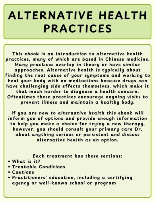 This eBook introduces these practices and therapies by giving a brief description, treatable conditions, cautions and practitioners’ education.